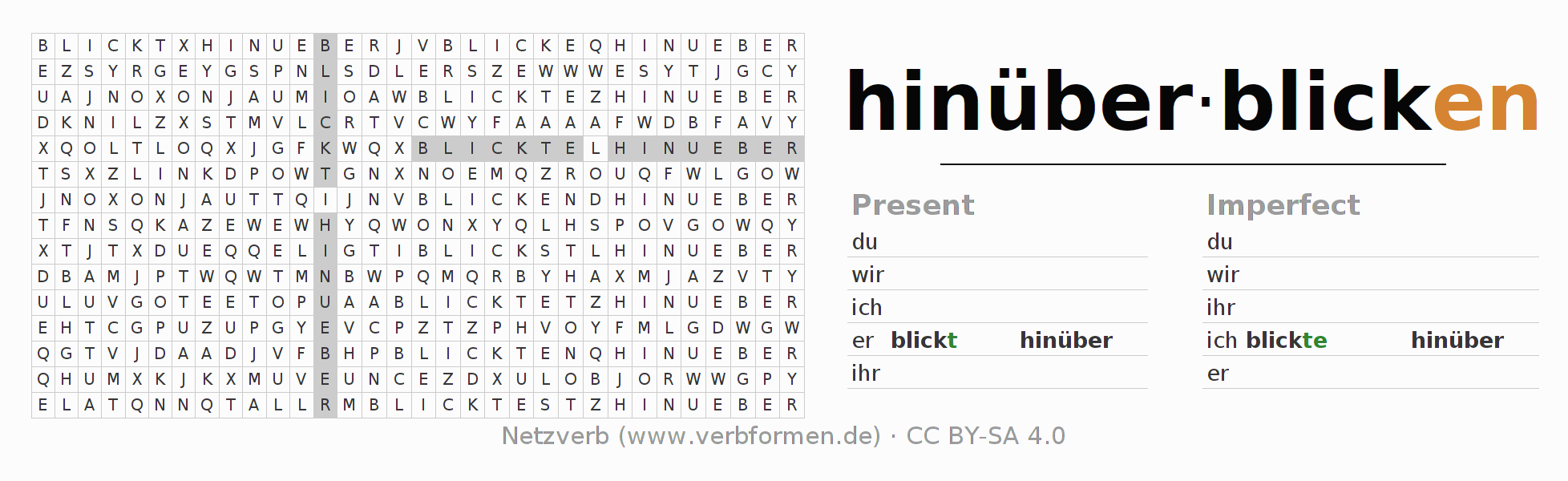 With these search word puzzles you can learn the conjugation of the German verb hinüberblicken.