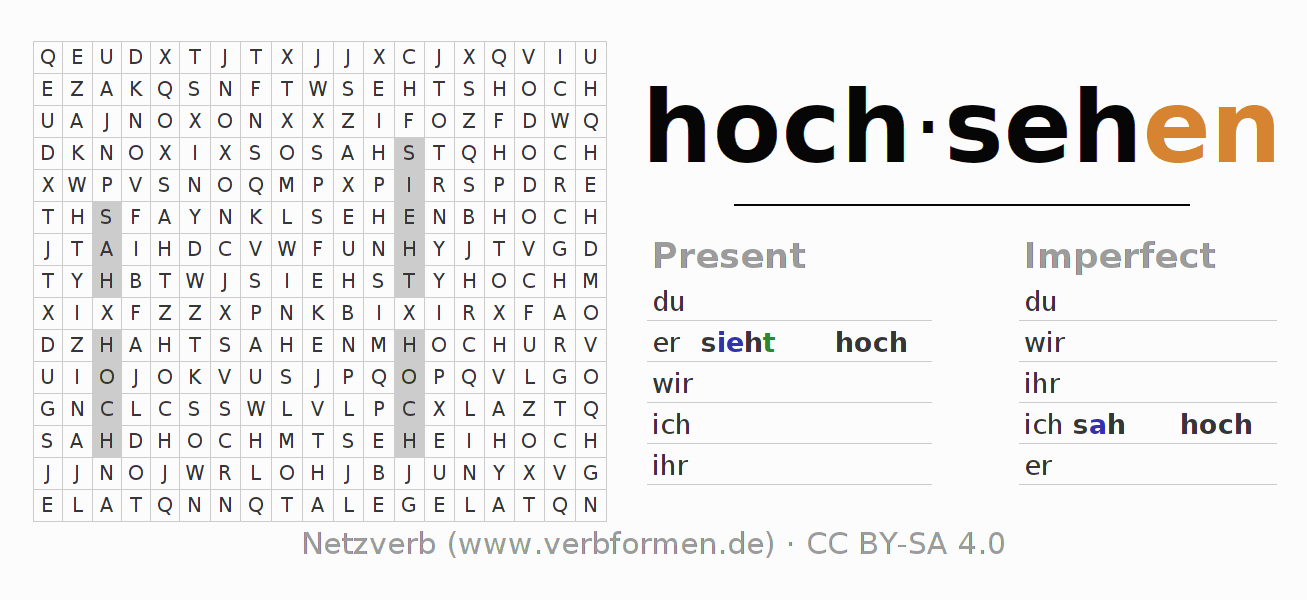 With these search word puzzles you can learn the conjugation of the German verb hochsehen.