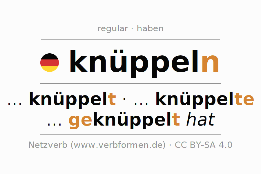Conjugation tables for all tenses of the verb knüppeln