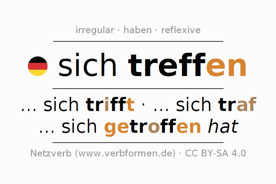 Conjugation tables for all tenses of the verb sich treffen (hat)