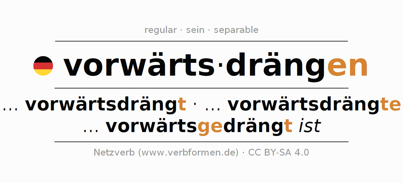 Conjugation tables for all tenses of the verb vorwärtsdrängen