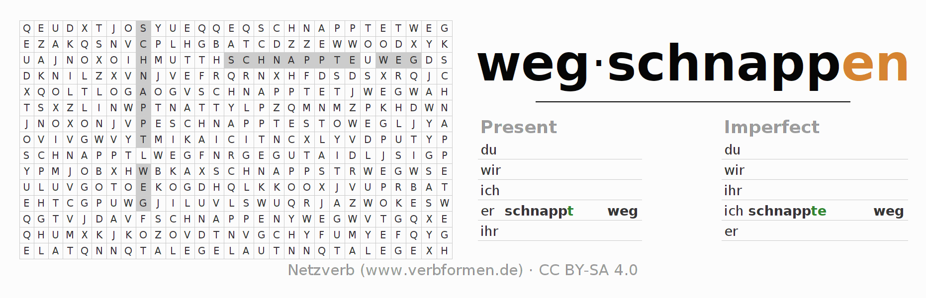 With these search word puzzles you can learn the conjugation of the German verb wegschnappen.