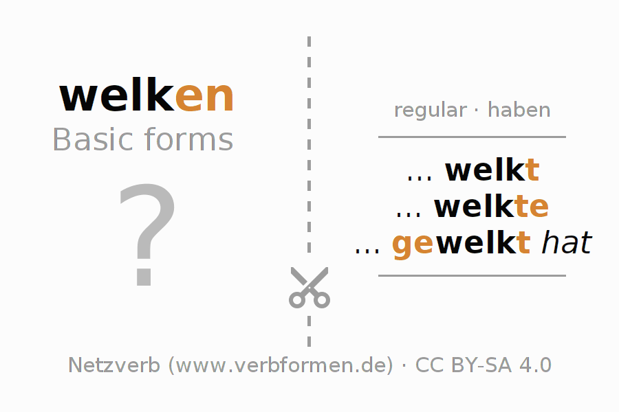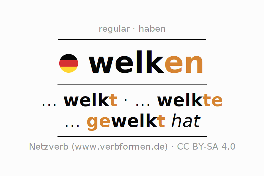 Worksheets are used generally for the conjugation of the verb welken in teaching. The materials can be used as Open Educational Resources (OER) for exercises, for games and as Tasks (CC BY-SA 4.0). There are many different types of tasks available for the verb welken (hat). These are overview sheets with complete conjugation, puzzles and games that require joint learning. The entire educational material is available for free as a PDF download, as pictures and as an interactive browser version. In addition to the tasks, countless examples for welken also provide an aid to using the verb.