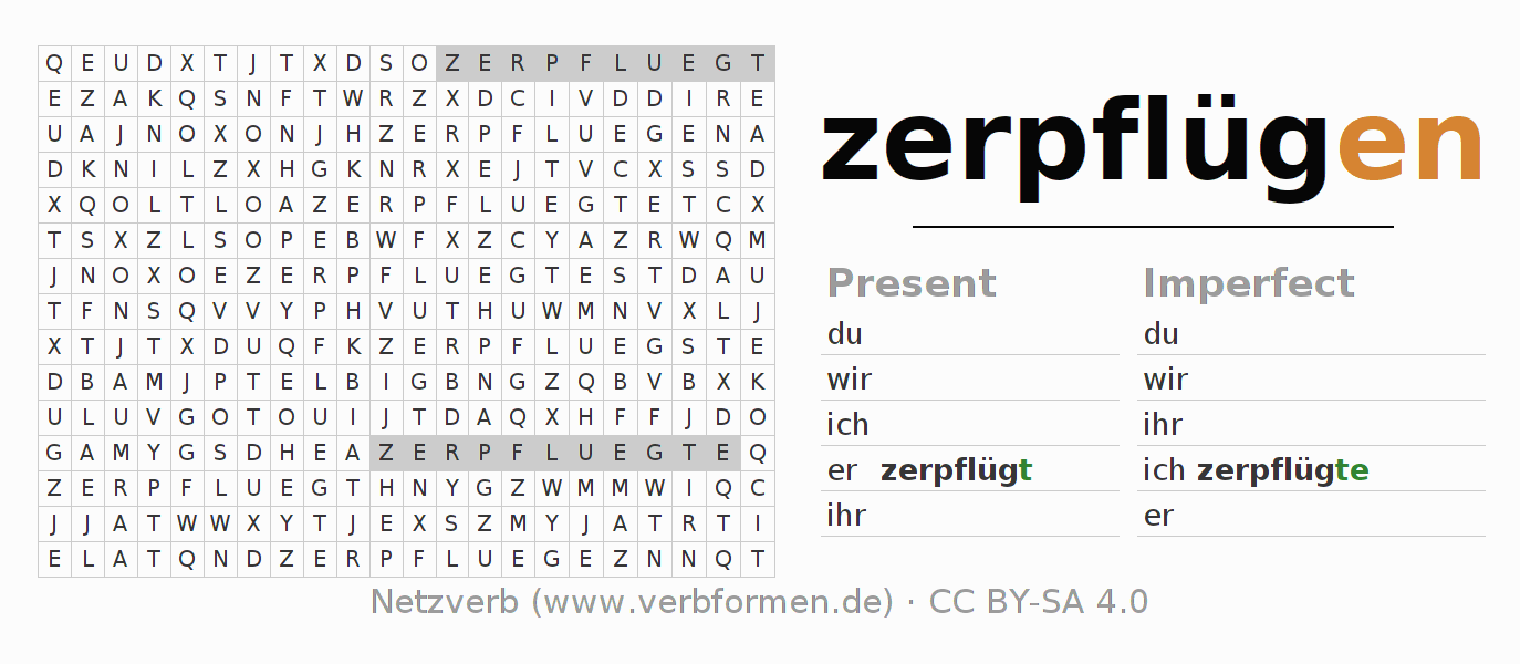 With these search word puzzles you can learn the conjugation of the German verb zerpflügen.