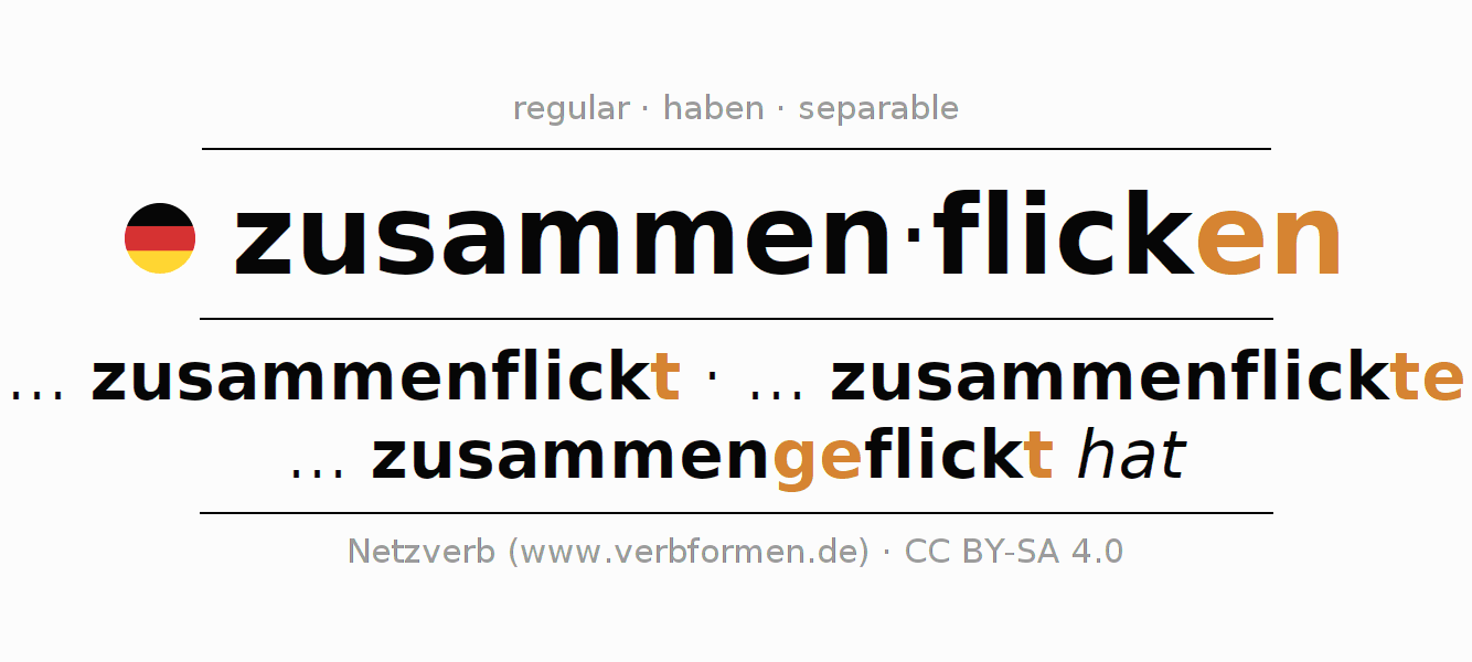 Conjugation tables for all tenses of the verb zusammenflicken