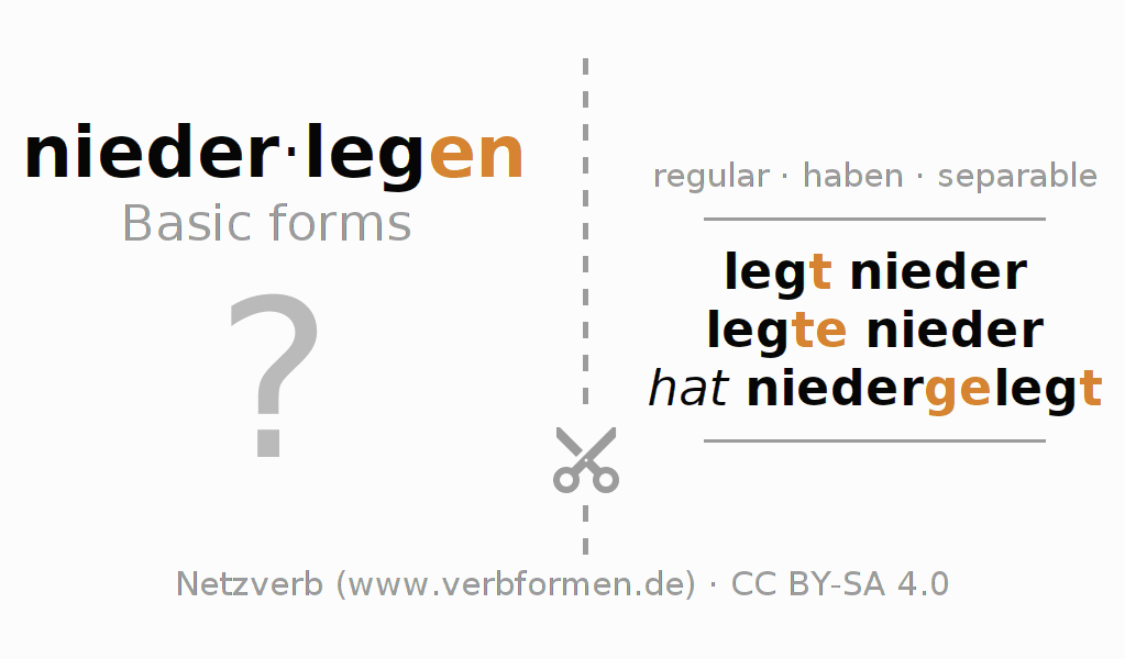 Conjugation tables for all tenses of the verb niederlegen