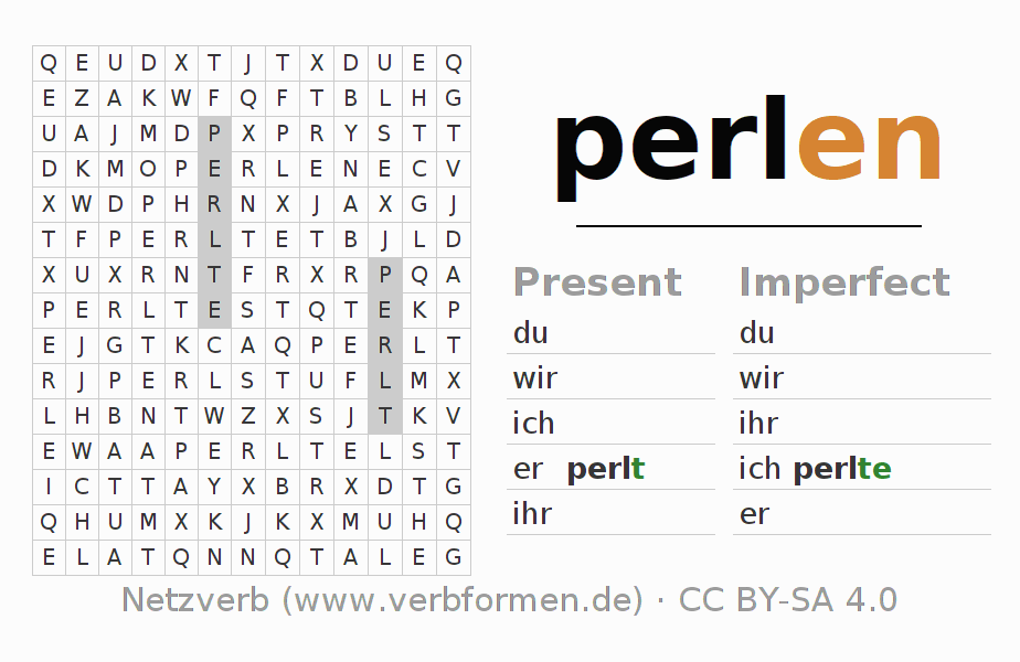 With these search word puzzles you can learn the conjugation of the German verb perlen.