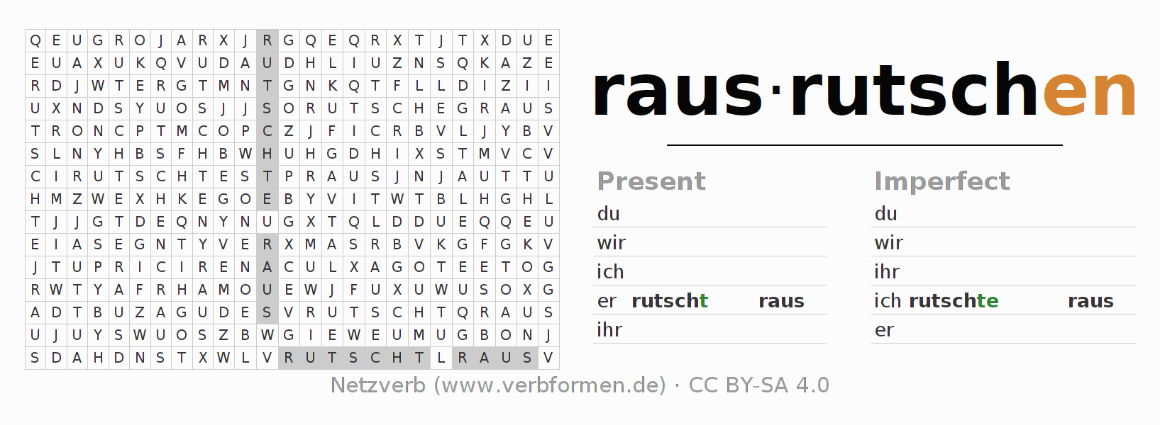 With these search word puzzles you can learn the conjugation of the German verb rausrutschen.