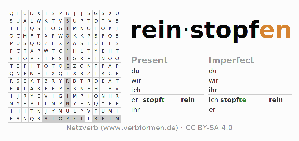 With these search word puzzles you can learn the conjugation of the German verb reinstopfen.