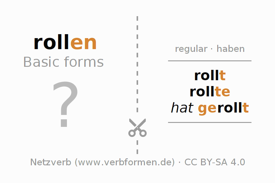 Worksheets are used generally for the conjugation of the verb rollen in teaching. The materials can be used as Open Educational Resources (OER) for exercises, for games and as Tasks (CC BY-SA 4.0). There are many different types of tasks available for the verb rollen (hat). These are overview sheets with complete conjugation, puzzles and games that require joint learning. The entire educational material is available for free as a PDF download, as pictures and as an interactive browser version. In addition to the tasks, countless examples for rollen also provide an aid to using the verb.