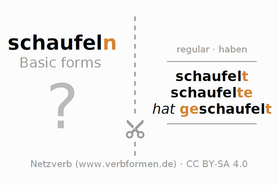 Worksheets are used generally for the conjugation of the verb schaufeln in teaching. The materials can be used as Open Educational Resources (OER) for exercises, for games and as Tasks (CC BY-SA 4.0). There are many different types of tasks available for the verb schaufeln. These are overview sheets with complete conjugation, puzzles and games that require joint learning. The entire educational material is available for free as a PDF download, as pictures and as an interactive browser version. In addition to the tasks, countless examples for schaufeln also provide an aid to using the verb.