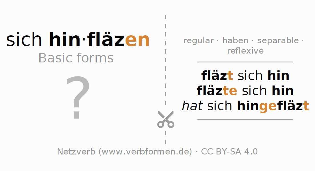 Flash cards, learning cards, learning notes for all tenses of the verb sich hinfläzen