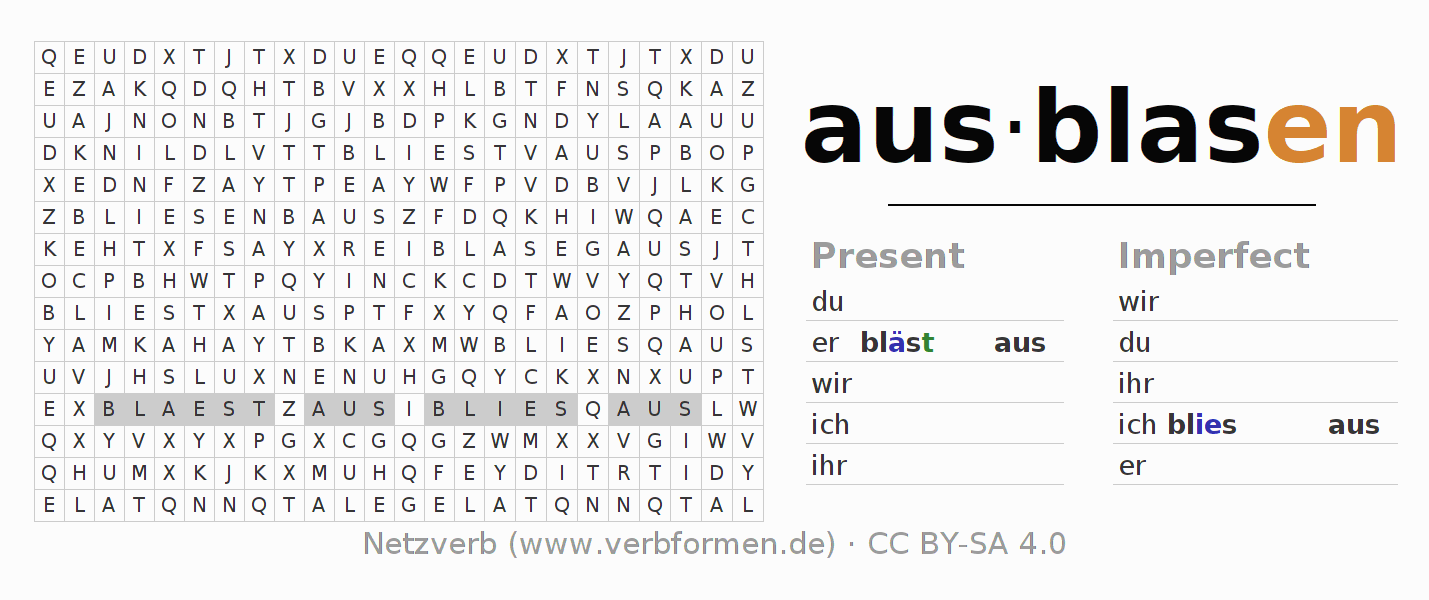 Solution for word search puzzle of conjugation of ausblasen