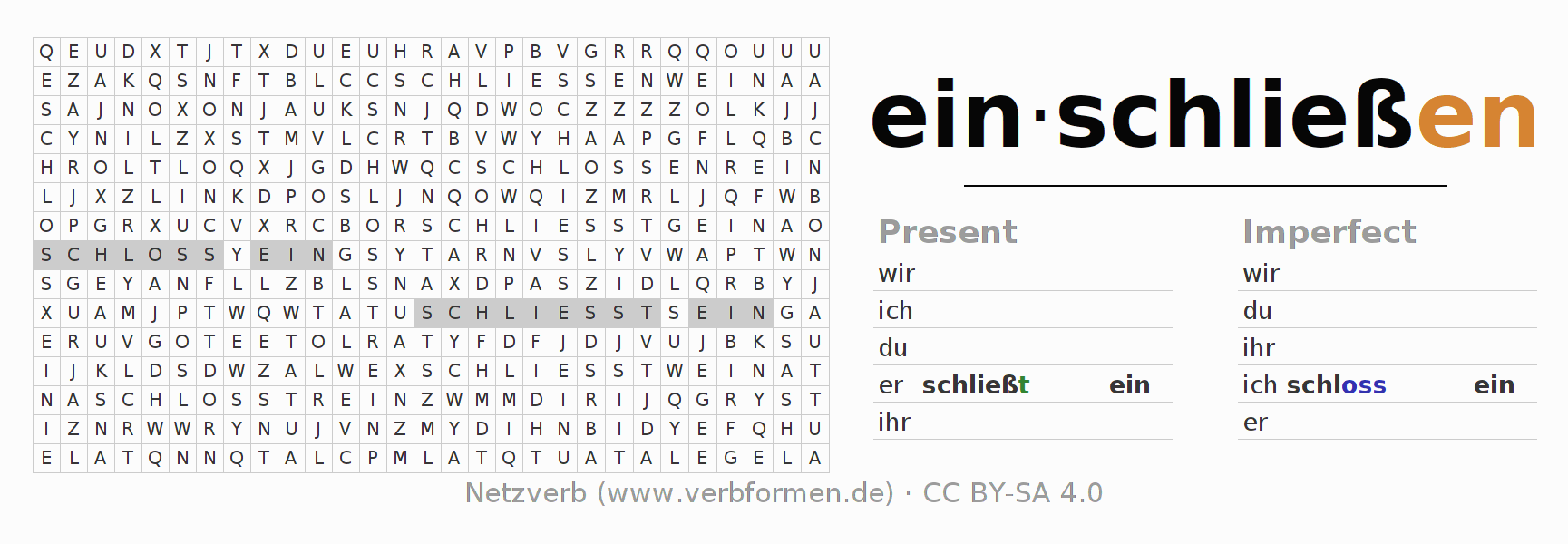 Solution for word search puzzle of conjugation of einschließen