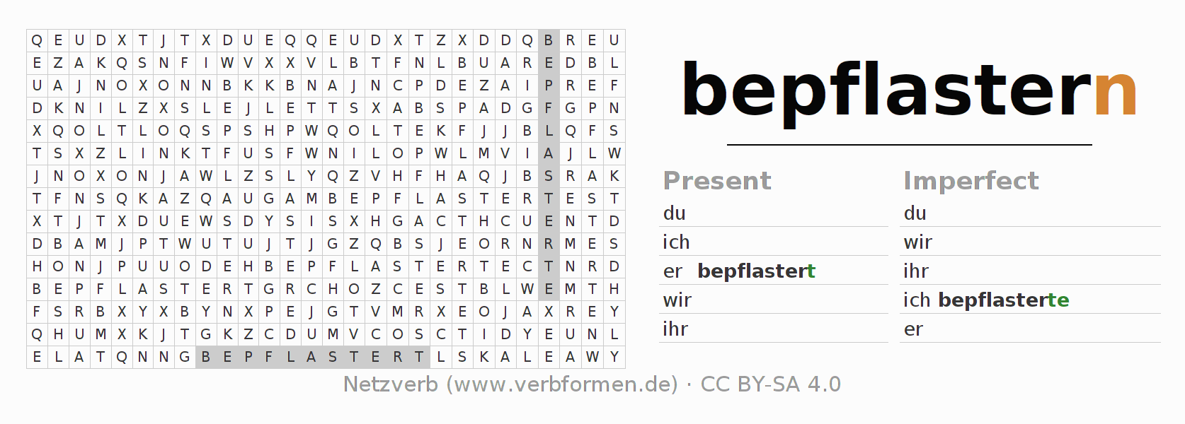 Solution for word search puzzle of conjugation of bepflastern