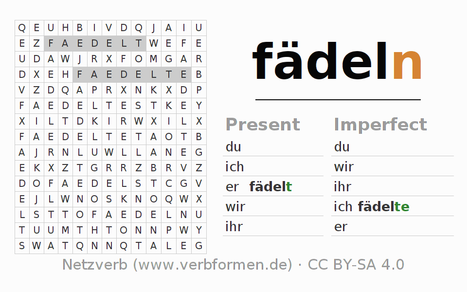 Solution for word search puzzle of conjugation of fädeln