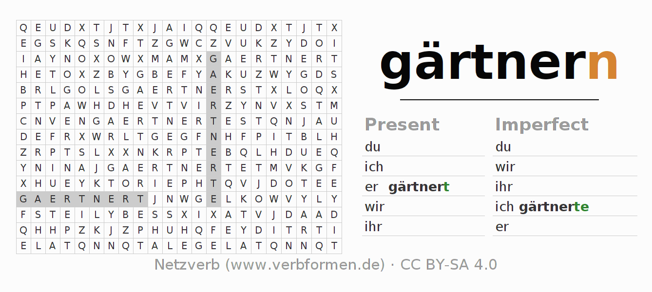 Solution for word search puzzle of conjugation of gärtnern