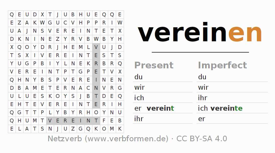 Solution for word search puzzle of conjugation of vereinen