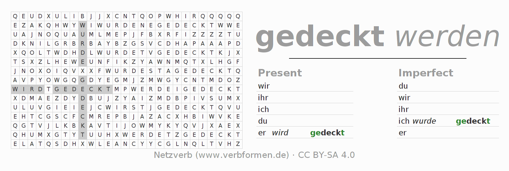 Word search puzzle for conjugation of German verb decken 〈Passive〉