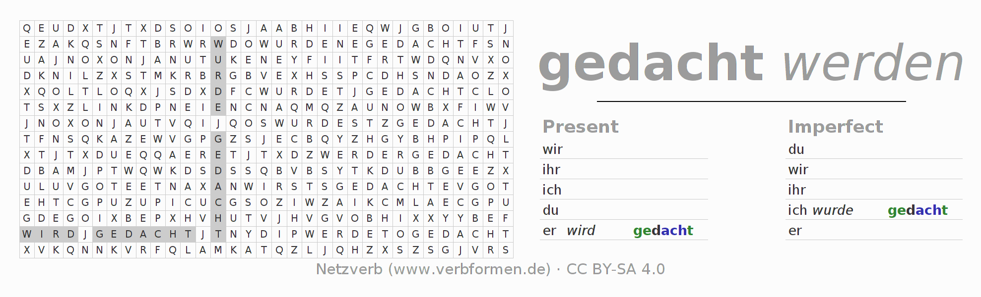 Word search puzzle for conjugation of German verb denken 〈Passive〉