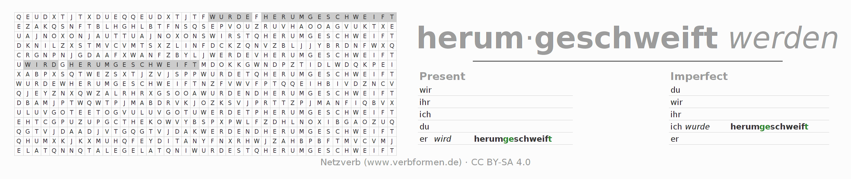 Solution for word search puzzle of conjugation of herumschweifen