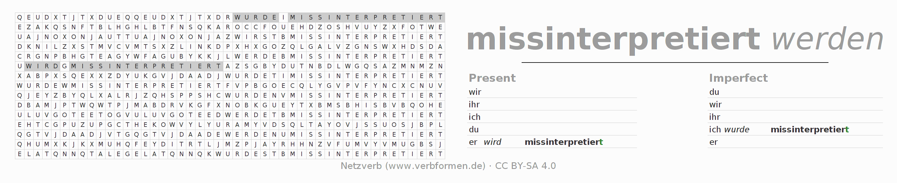 Solution for word search puzzle of conjugation of missinterpretieren