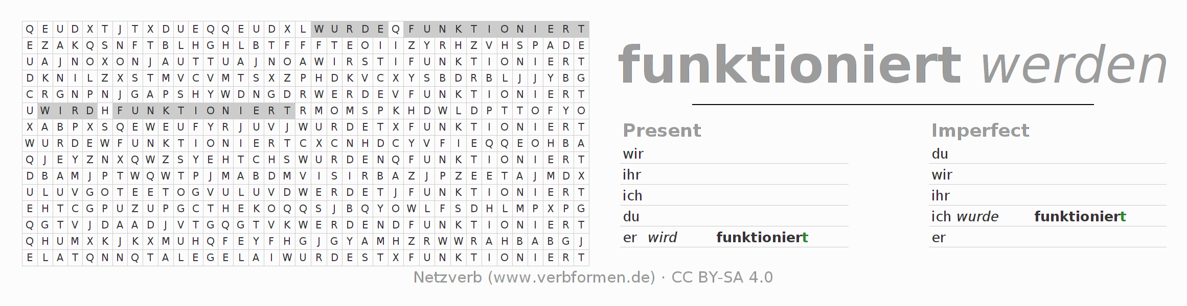 Solution for word search puzzle of conjugation of funktionieren