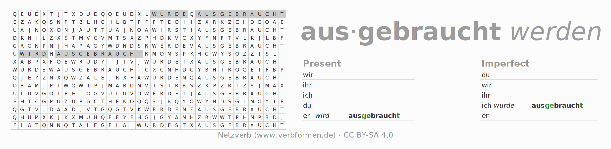 Solution for word search puzzle of conjugation of ausbrauchen