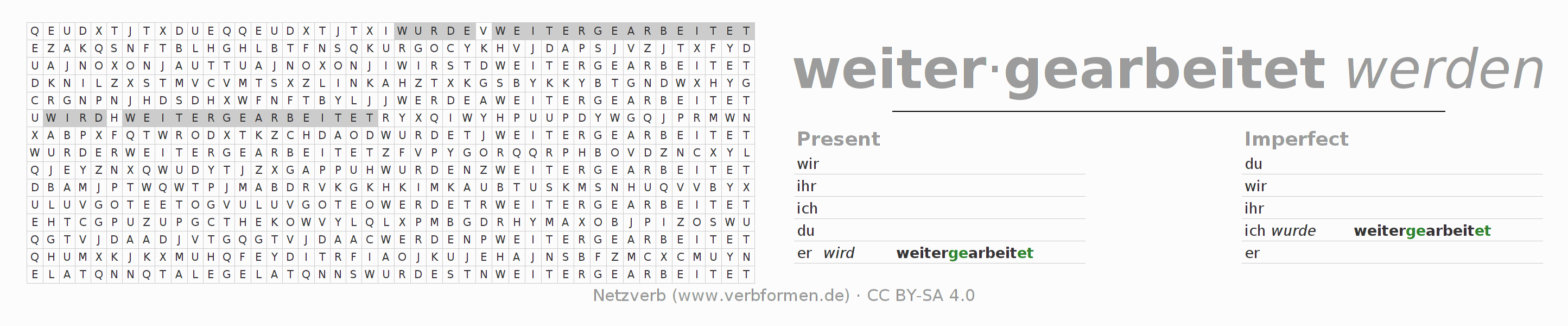 Solution for word search puzzle of conjugation of weiterarbeiten