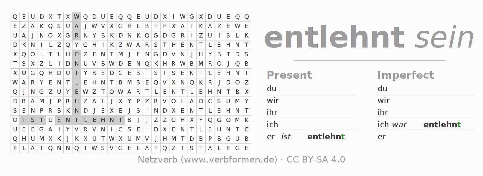 Solution for word search puzzle of conjugation of entlehnen