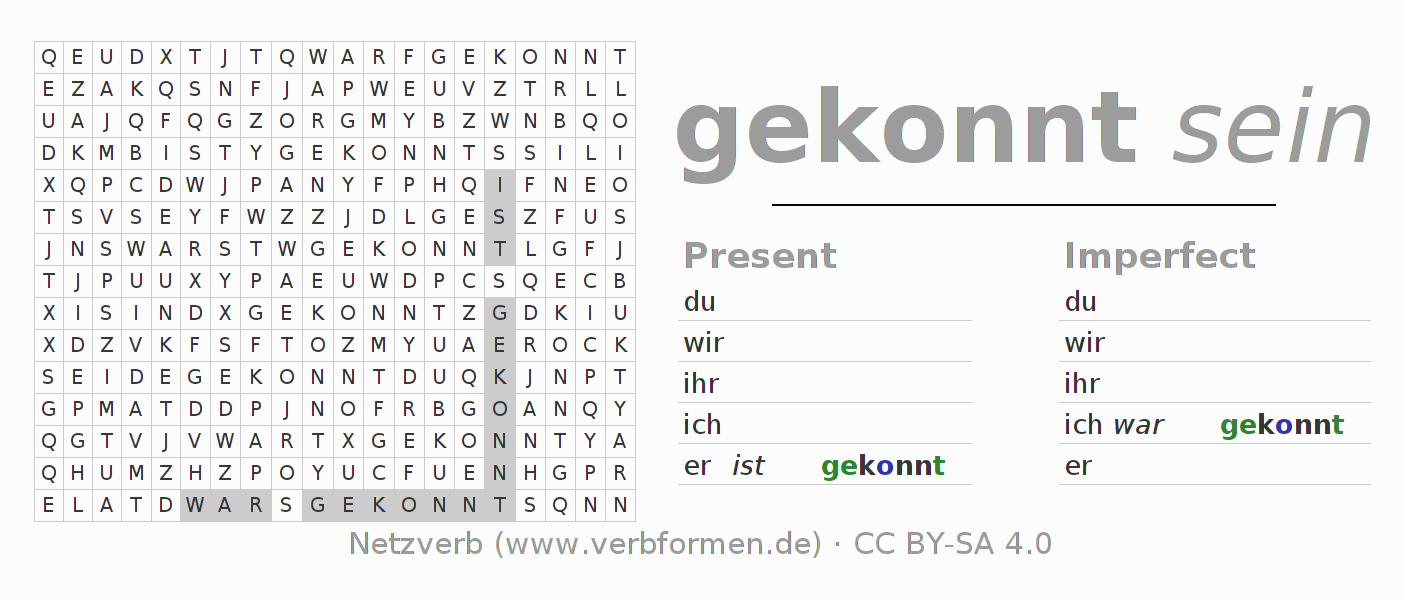 Solution for word search puzzle of conjugation of können
