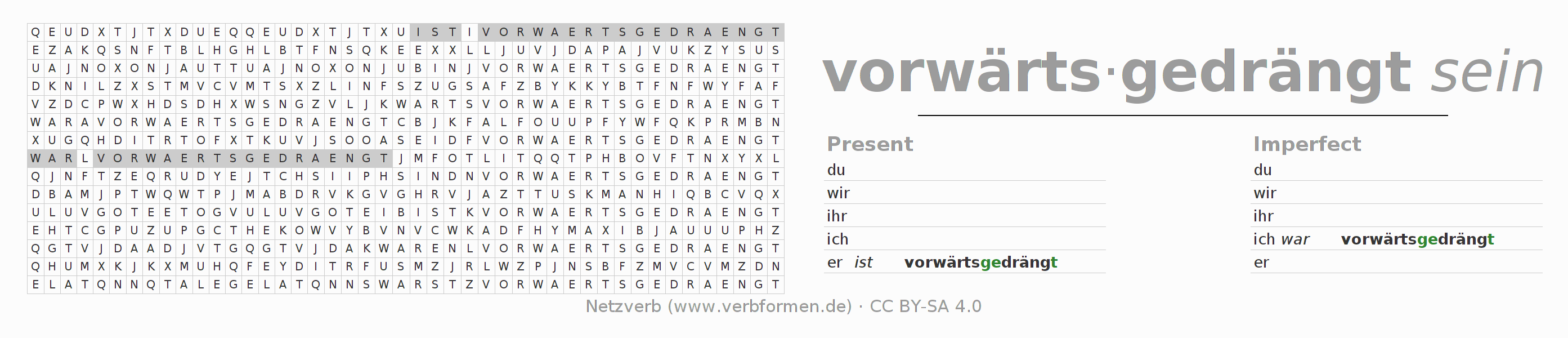 Solution for word search puzzle of conjugation of vorwärtsdrängen