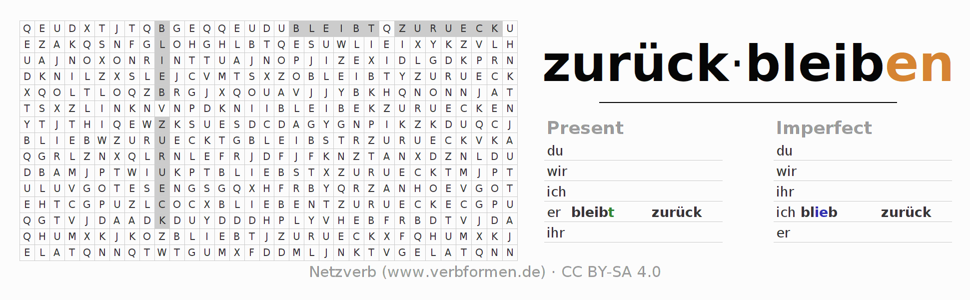Solution for word search puzzle of conjugation of zurückbleiben