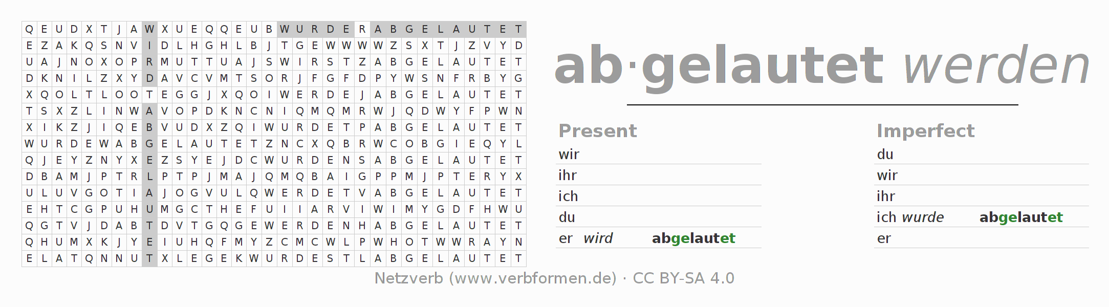 With these search word puzzles you can learn the conjugation of the German verb ablauten.
