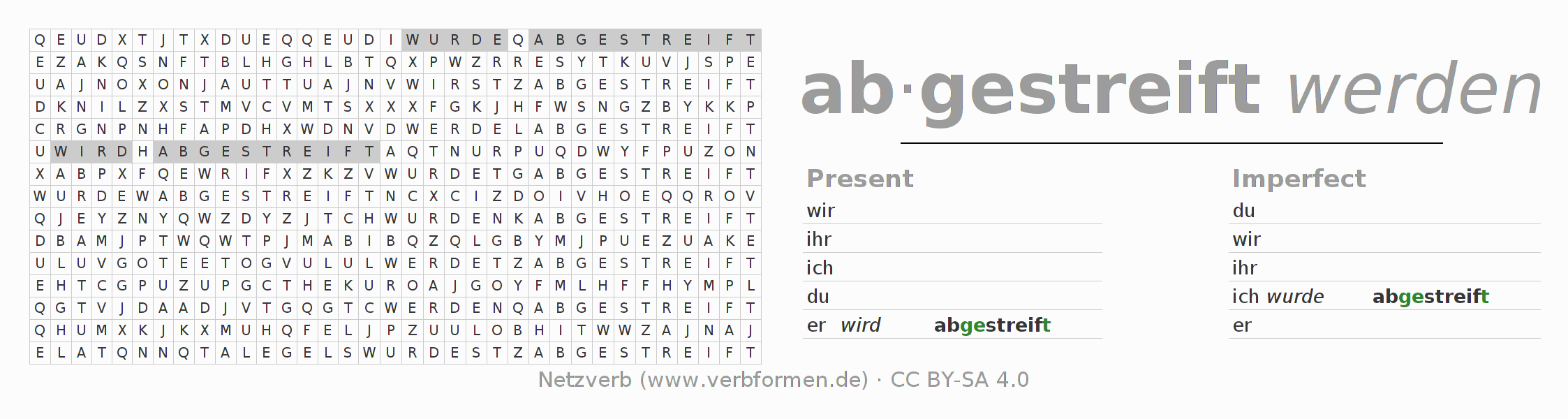 With these search word puzzles you can learn the conjugation of the German verb abstreifen.