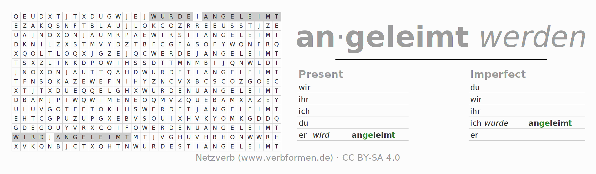 With these search word puzzles you can learn the conjugation of the German verb anleimen.