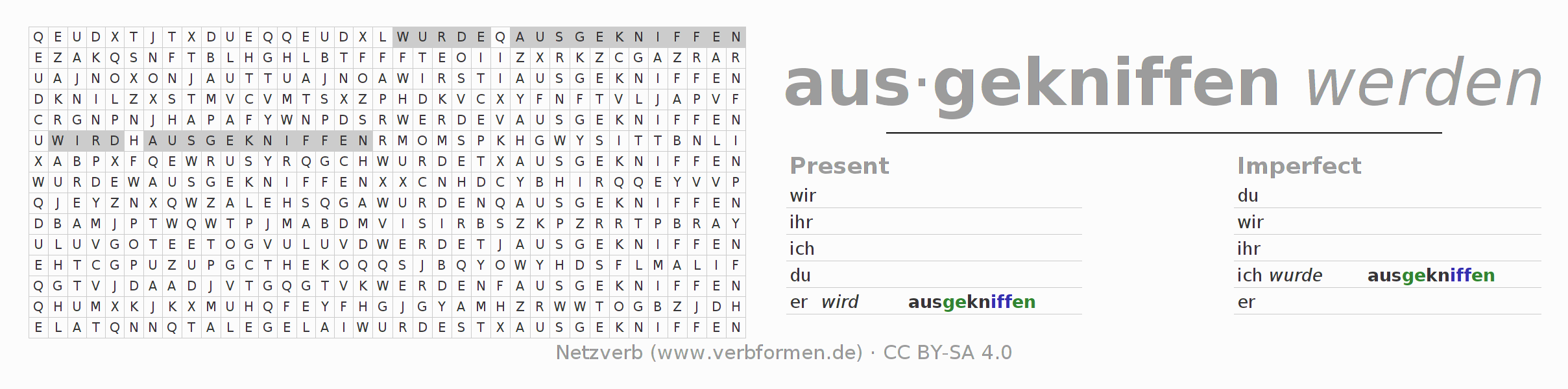 With these search word puzzles you can learn the conjugation of the German verb auskneifen.