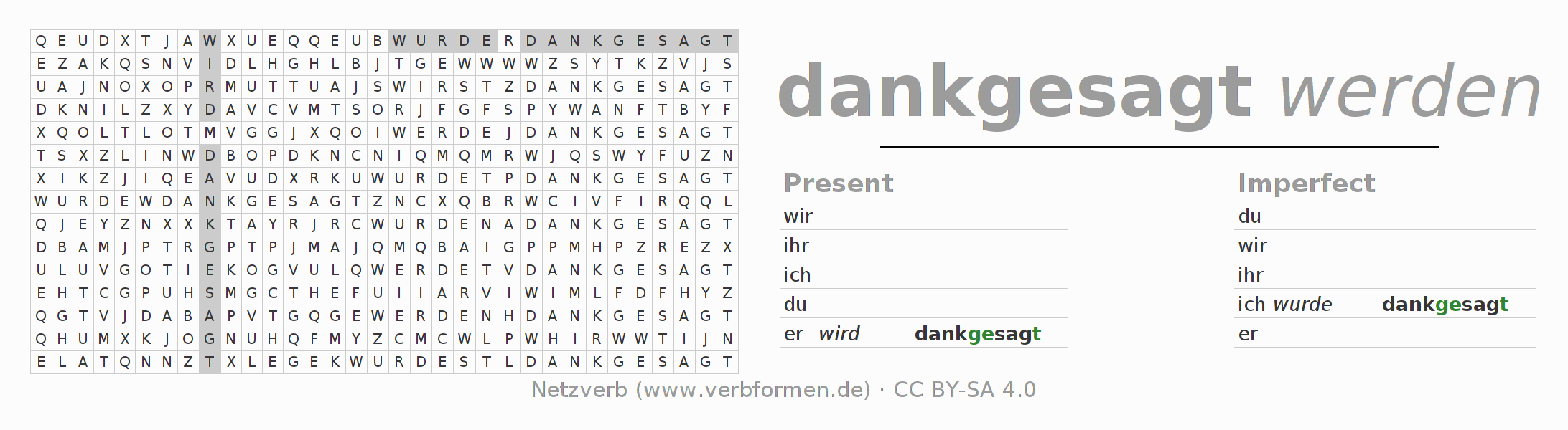 With these search word puzzles you can learn the conjugation of the German verb danksagen.