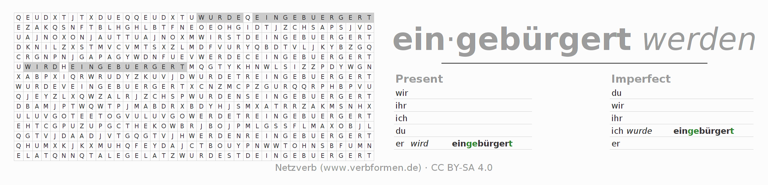 With these search word puzzles you can learn the conjugation of the German verb einbürgern.
