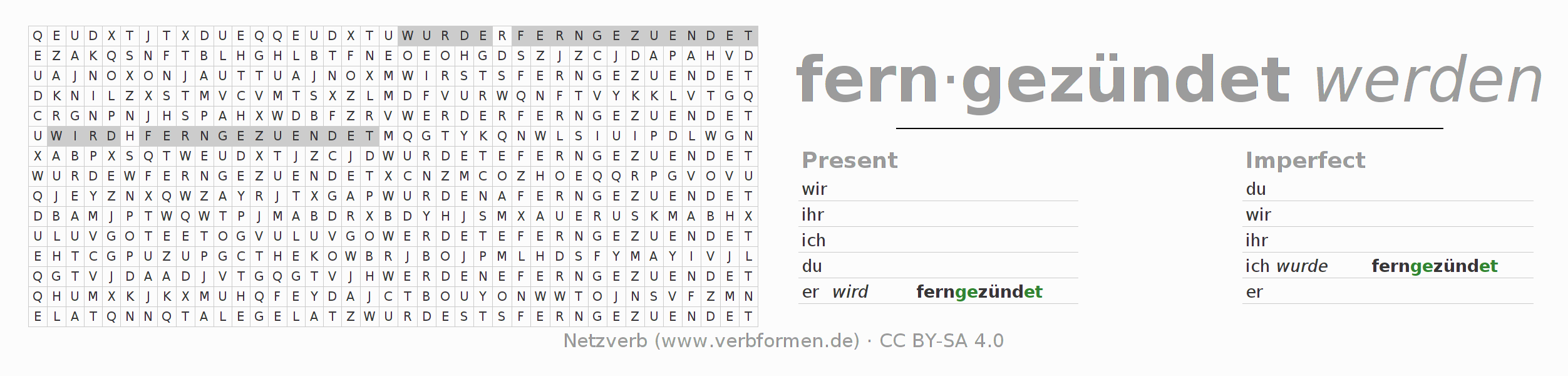 With these search word puzzles you can learn the conjugation of the German verb fernzünden.