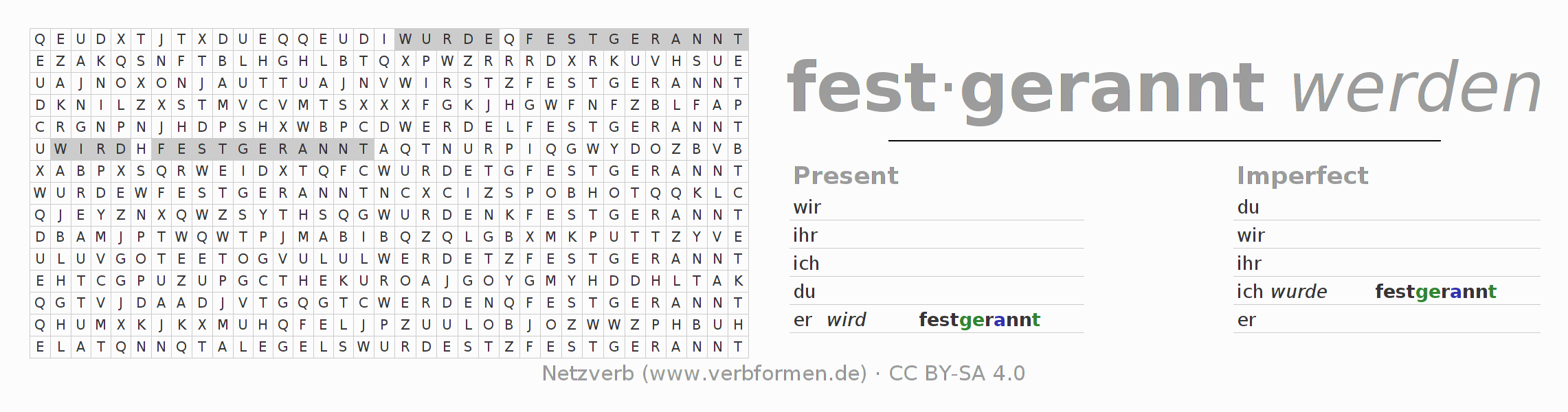 With these search word puzzles you can learn the conjugation of the German verb festrennen.