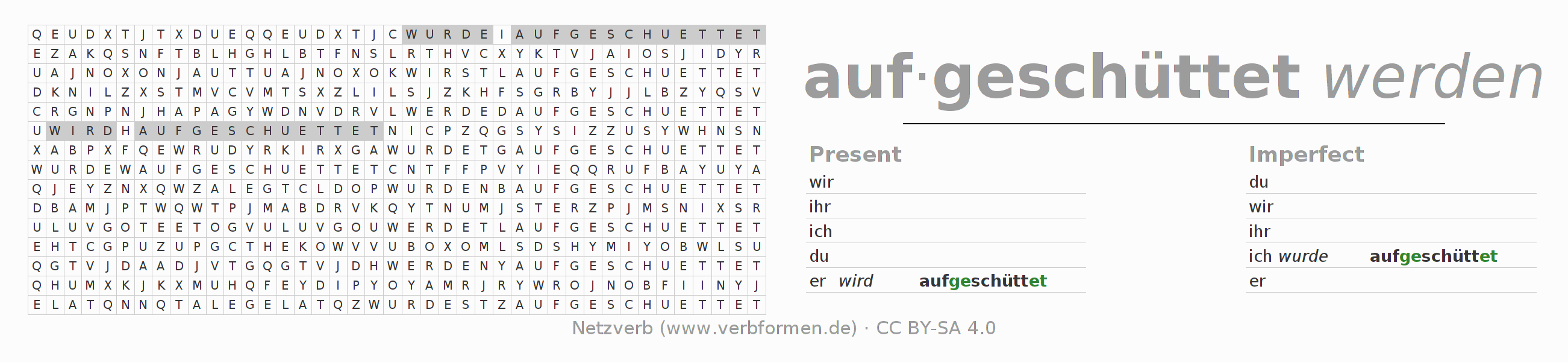 With these search word puzzles you can learn the conjugation of the German verb aufschütten.