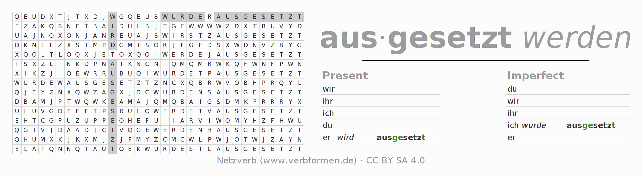 With these search word puzzles you can learn the conjugation of the German verb aussetzen.