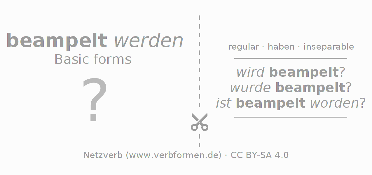 Worksheets for conjugation of German Verb beampeln 〈Passive〉 〈Interrogative〉