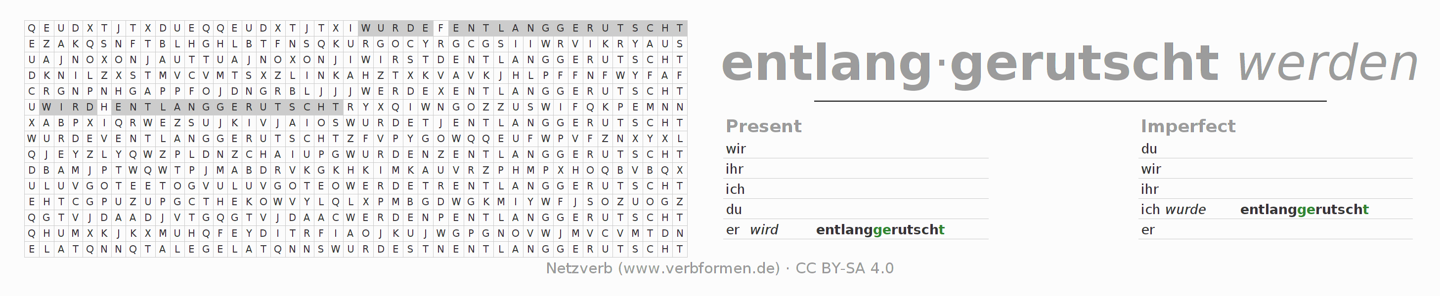 With these search word puzzles you can learn the conjugation of the German verb entlangrutschen.