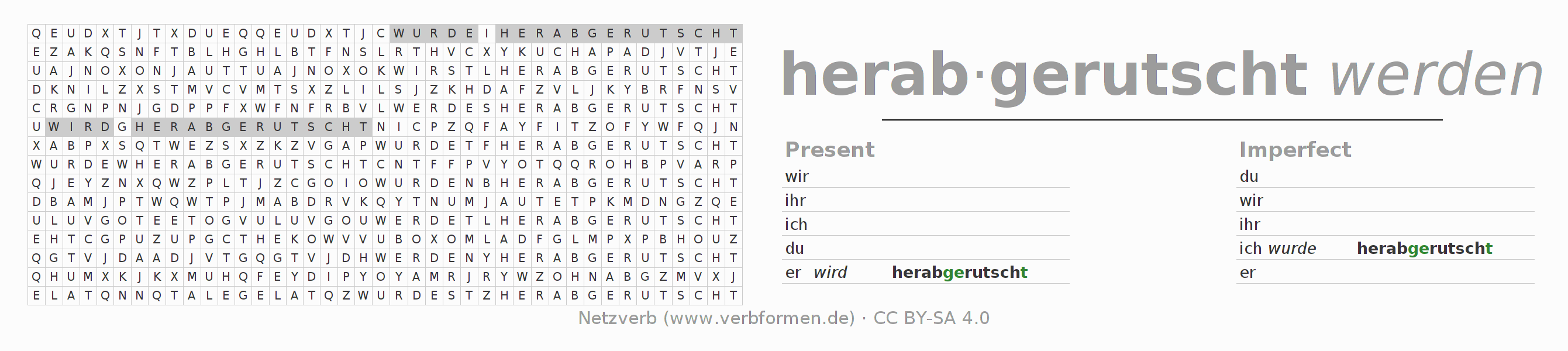 With these search word puzzles you can learn the conjugation of the German verb herabrutschen.