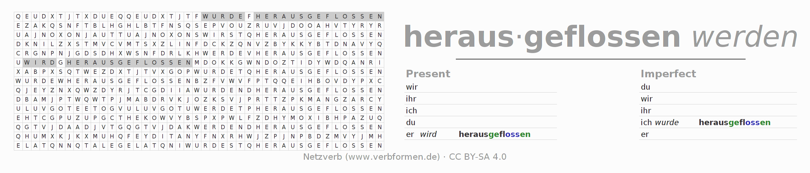 With these search word puzzles you can learn the conjugation of the German verb herausfließen.