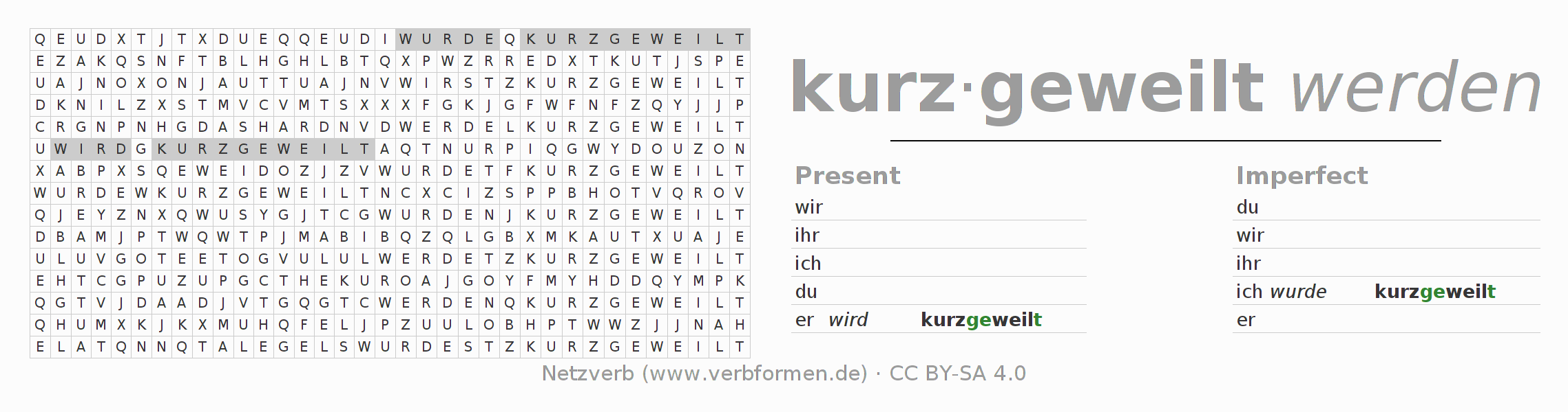With these search word puzzles you can learn the conjugation of the German verb kurzweilen.