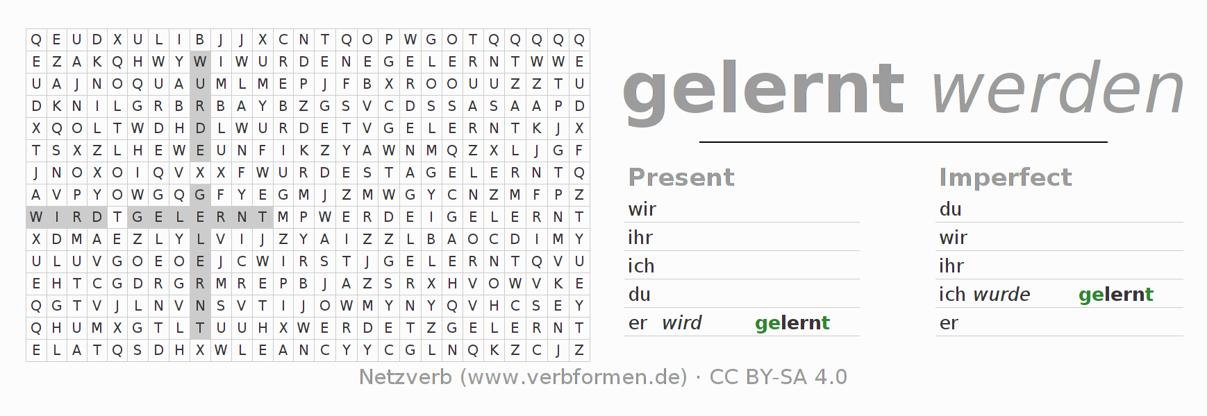 With these search word puzzles you can learn the conjugation of the German verb lernen.