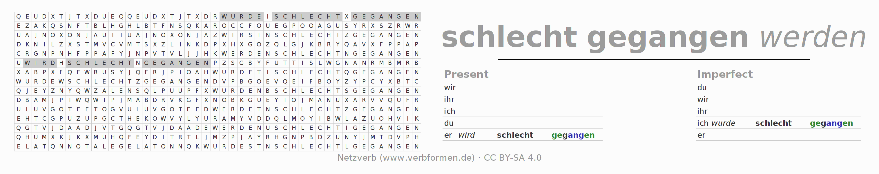 With these search word puzzles you can learn the conjugation of the German verb schlechtgehen.